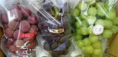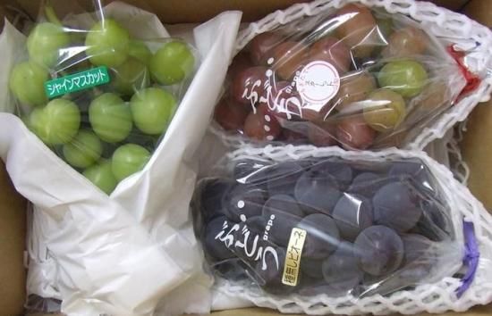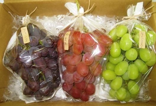 当園で栽培・収穫可能品種の内から、収穫最適期の房を3房 (2品種か3品種) 選びお届けいたします。