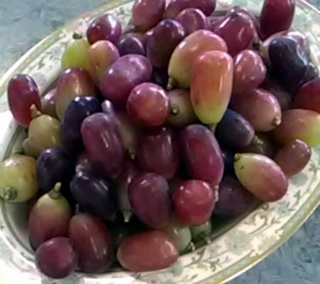 鋏でカットした玉状の完熟ブドウ、新鮮さと美味しさが売り物です。